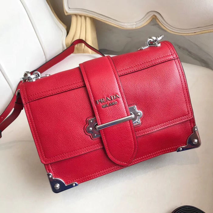 ✨Prada Cahier Leather Shoulder Bag,24cm - 프라다 카이에 레더 여성용 숄더백 ,1BD095-4,24cm,레드 요약정보 및 구매