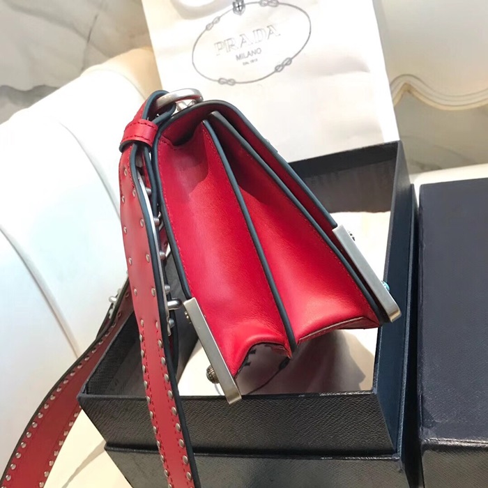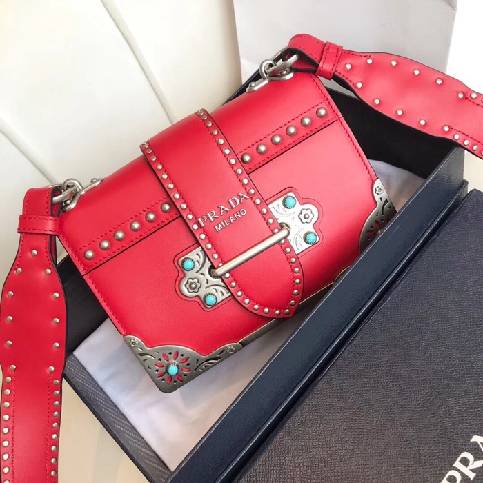 ✨Prada Cahier Leather Shoulder Bag,20cm - 프라다 카이에 레더 여성용 숄더백 ,1BD045-23,20cm,레드 요약정보 및 구매