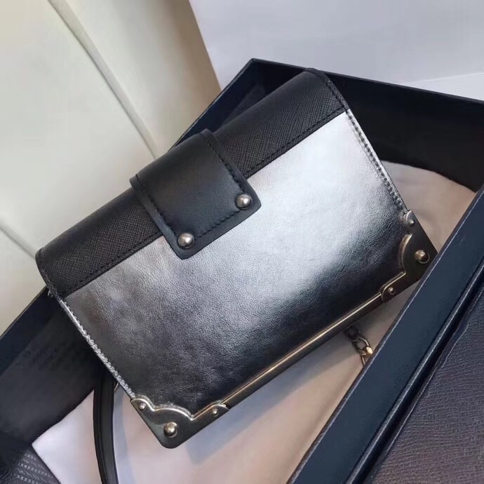 ✨Prada 2018 Cahier Leather Shoulder Bag,18cm - 프라다 2018 카이에 레더 여성용 숄더백 ,1BH018-4,18cm,실버 요약정보 및 구매