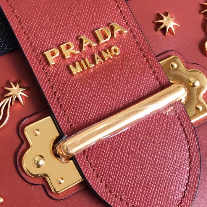 ✨Prada 2018 Cahier Leather Shoulder Bag,18cm - 프라다 2018 카이에 레더 여성용 숄더백 ,1BH018-9,18cm,레드오렌지 요약정보 및 구매