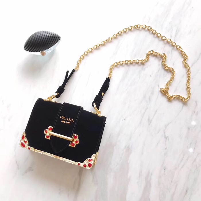 ✨Prada 2018 Cahier Leather Shoulder Bag,18cm - 프라다 2018 카이에 레더 여성용 숄더백 ,1BH018-15,18cm,블랙 요약정보 및 구매