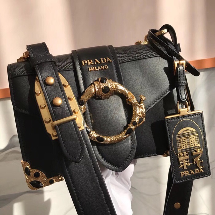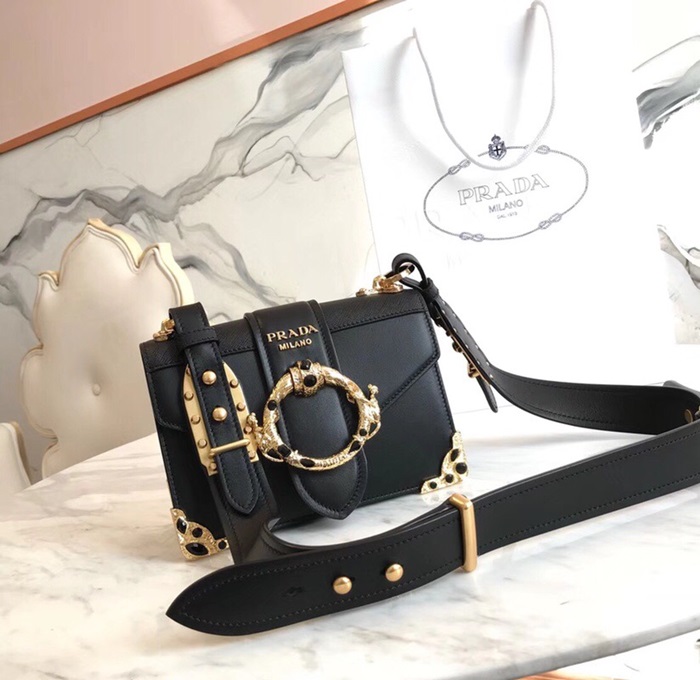 ✨Prada Cahier Leather Shoulder Bag,20cm - 프라다 카이에 레더 여성용 숄더백 ,1BD103-3,20cm,블랙 요약정보 및 구매