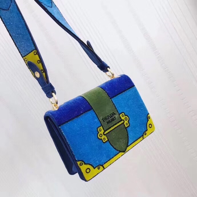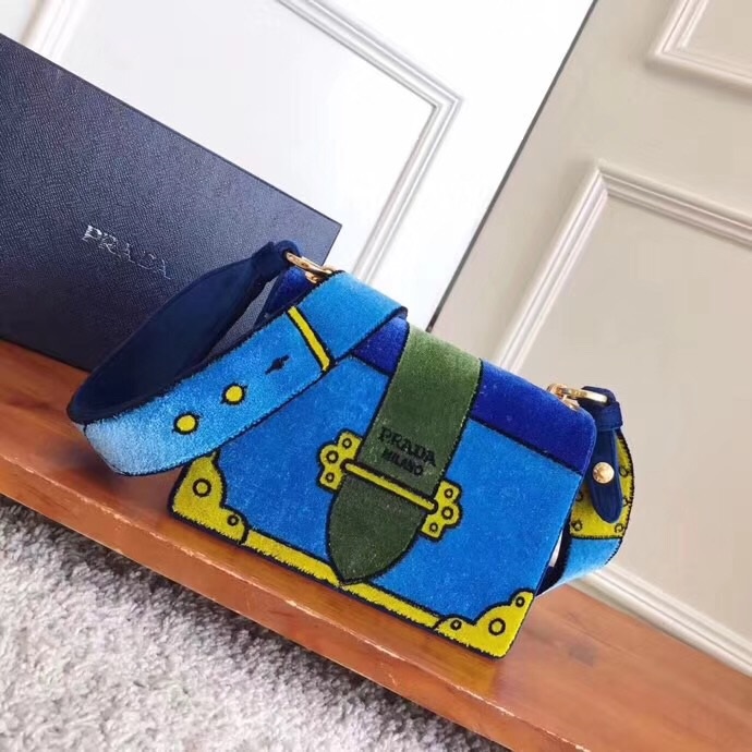 ✨Prada Velvet Leather Shoulder Bag,20cm - 프라다 벨벳 레더 여성용 숄더백 ,1BD075-2,20cm,블루 요약정보 및 구매