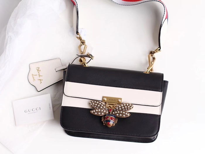 ✨Gucci Queen Margaret Leather Shoulder Bag,22.5CM - 구찌 퀸 마가렛 레더 숄더백 476542,GUB0395,22.5cm,블랙+화이트 요약정보 및 구매