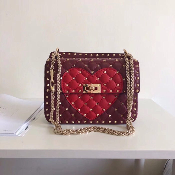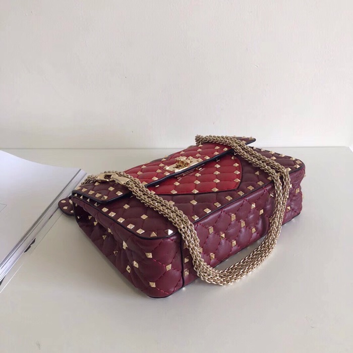 ✨Valentino 2019 Leather Rockstud Spike Tote Shoudler Bag,24CM - 발렌티노 2019 레더 락스터드 스파이크 토트 숄더백,VTB0205,24CM,와인+레드 요약정보 및 구매