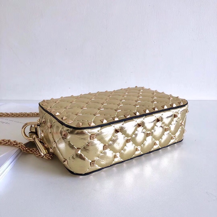 ✨[러블리❤]Valentino 2019 Leather Ruckstud Spike Camera Small Shoudler Bag,18.5CM - 발렌티노 2019 여성용 레더 락스터드 스파이크 카메라 스몰 숄더백 ,VTB0309,18.5CM,옐로우골드 요약정보 및 구매
