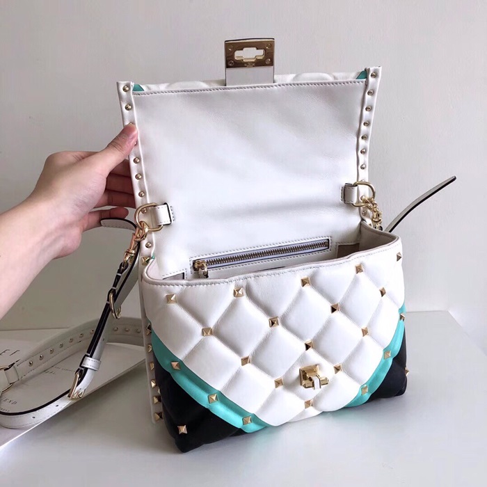 ✨Valentino 2019 Leather Rockstud Tote Shoudler Bag,23CM - 발렌티노 2019 레더 락스터드 토트 숄더백,0055-VTB0375,23CM,블랙+화이트(민트) 요약정보 및 구매