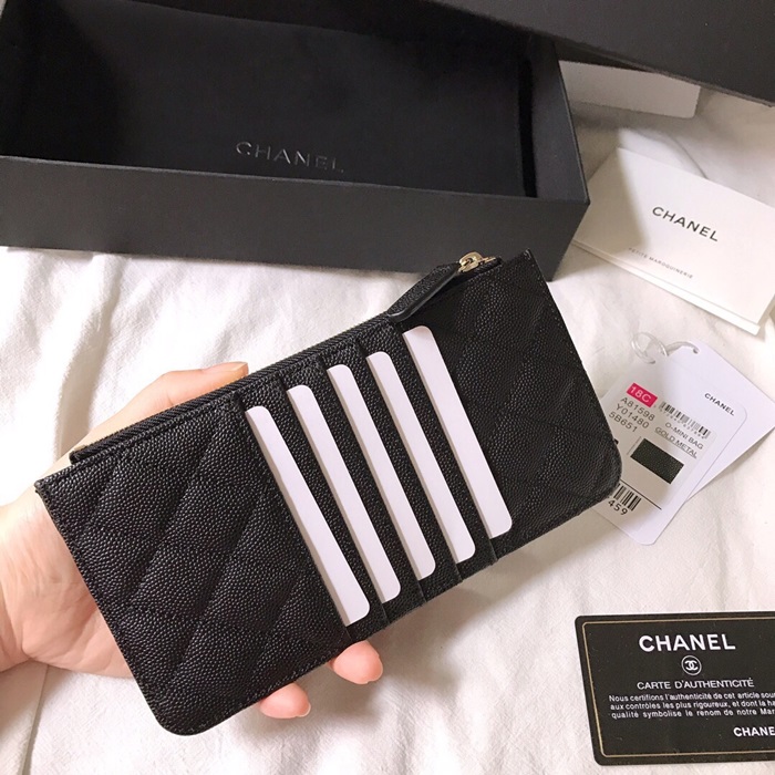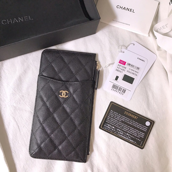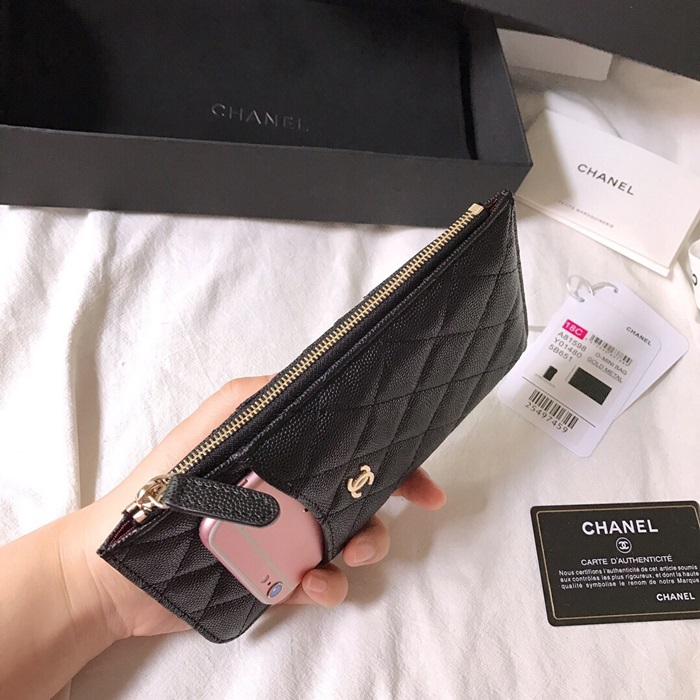 ✨Chanel 2019 Ladies Wallet / Coin Purse / Card Purse / Phone Case - 샤넬 2019 여성용 레더 장지갑 / 동전지갑 / 카드지갑 / 휴대폰 케이스,CHAW0004,19.5cm.블랙(금장) 요약정보 및 구매