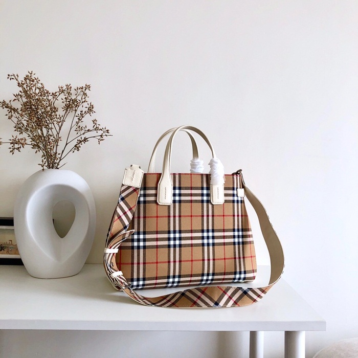 ✨Burberry 2019 Leather Banner Tote Shoulder Bag, 25/34cm - 버버리 2019 레더 배너 토트 숄더백,BURB0344,25/34cm,브라운+화이트 요약정보 및 구매