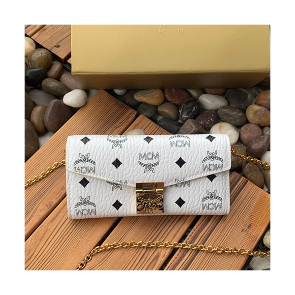 ✨MCM 2019 Visetos Wallet Chain Shoulder Cross Bag,19cm - 엠씨엠 2019 여성용 비세토스 월릿 체인 숄더 크로스백 MCMB0309, 19cm,화이트 요약정보 및 구매