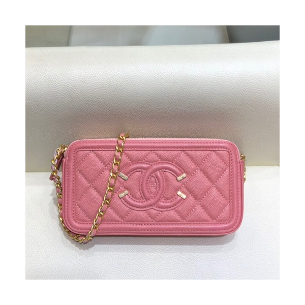 ✨Chanel 2019 Leather Double Zip Chain Shoulder Bag / Phone Bag,19CM - 샤넬 2019 레더 더블 지퍼 체인 숄더백/폰 백 CHAB1188,19CM,핑크 요약정보 및 구매