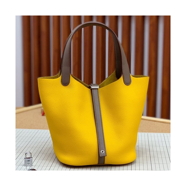✨Hermes 2019 Picotin Lock Leather Tote Bag,18cm - 에르메스 2019 피코탄 락 레더 여성용 토트백 HERB0755, 18cm,옐로우 요약정보 및 구매