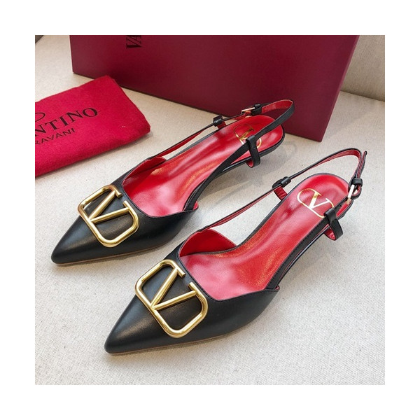 ✨Valentino 2019 Ladies Leather Middle Heel Slingback - 발렌티노 2019 여성용 레더 미들힐 슬링백,VTS0128.Size(225 - 250).블랙 요약정보 및 구매